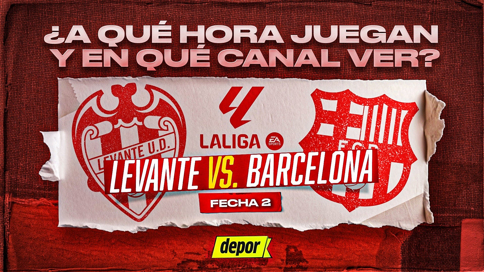 En España, el choque entre Barcelona vs. Levante por la jornada 2 de LaLiga, está pactado para iniciar a las 9:30 p.m. Los hinchas de ambos clubes en territorio español pueden conectarse a esa hora para ver el partido.